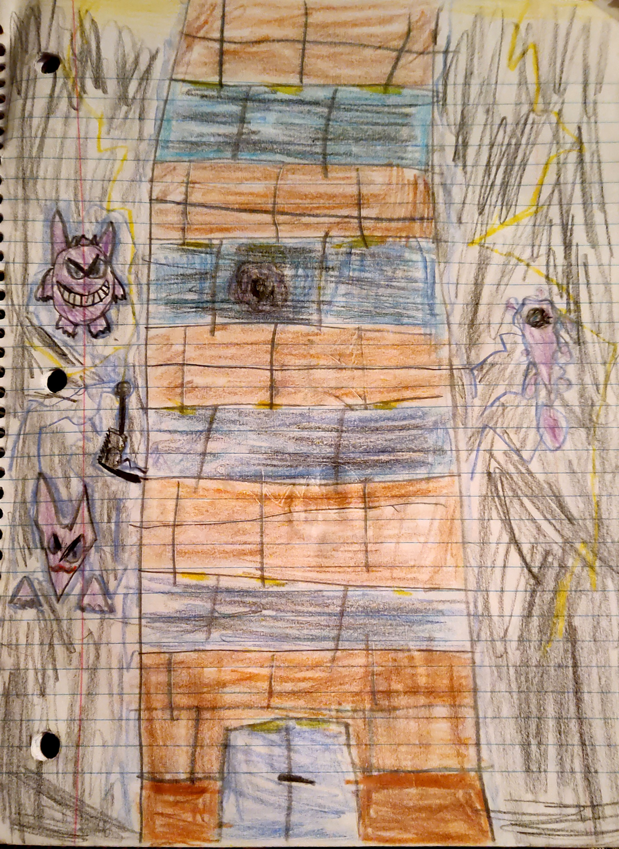 In 2001 I was in first grade so these are probably some of the earliest drawings I've ever done. I could only find one line rulled book with crayon drawings of pokemon, but this is my humble begining!